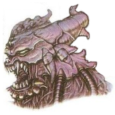 Its physical appearance is of a colossal AI server, housed in its own room on the Cogito Ergo Sum's third floor. When encountered inside the Captain Square arcade game, it takes on a more imposing virtual appearance as the MUR-TH-UR Matrix, appearing as a deep blue wireframe demon head with glowing orange eyes and many sharp horns and fangs. If the move HP Lookup is used on it, its form will solidify as if it were growing skin, giving it a far more menacing look.