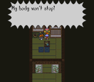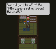 Gennai resides in his personal tea room on the castle's fourth floor. As Oboromaru approaches, Gennai, hidden behind a wall, attempts to trick the ninja into sitting on the nearby placemat for a cup of tea. If Oboromaru steps on the mat, he will fall all the way down to the castle's dungeon. Oboromaru must speak to Gennai repeatedly from the other room, even as Gennai facetiously disables the trap. Gennai will soon emerge from his hiding spot and do battle with Oboromaru. Once defeated, his mechanical body will malfunction and, as he begs for help, goes up in an explosion. With his death, all the traps and mechanisms in the castle are permanently disabled.